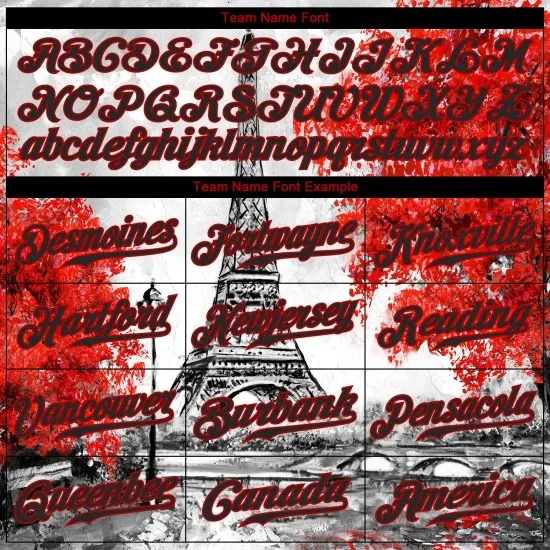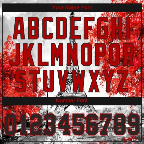 Camiseta de béisbol blanca con diseño personalizado en 3D de la Torre Eiffel, auténtica, negra y roja
